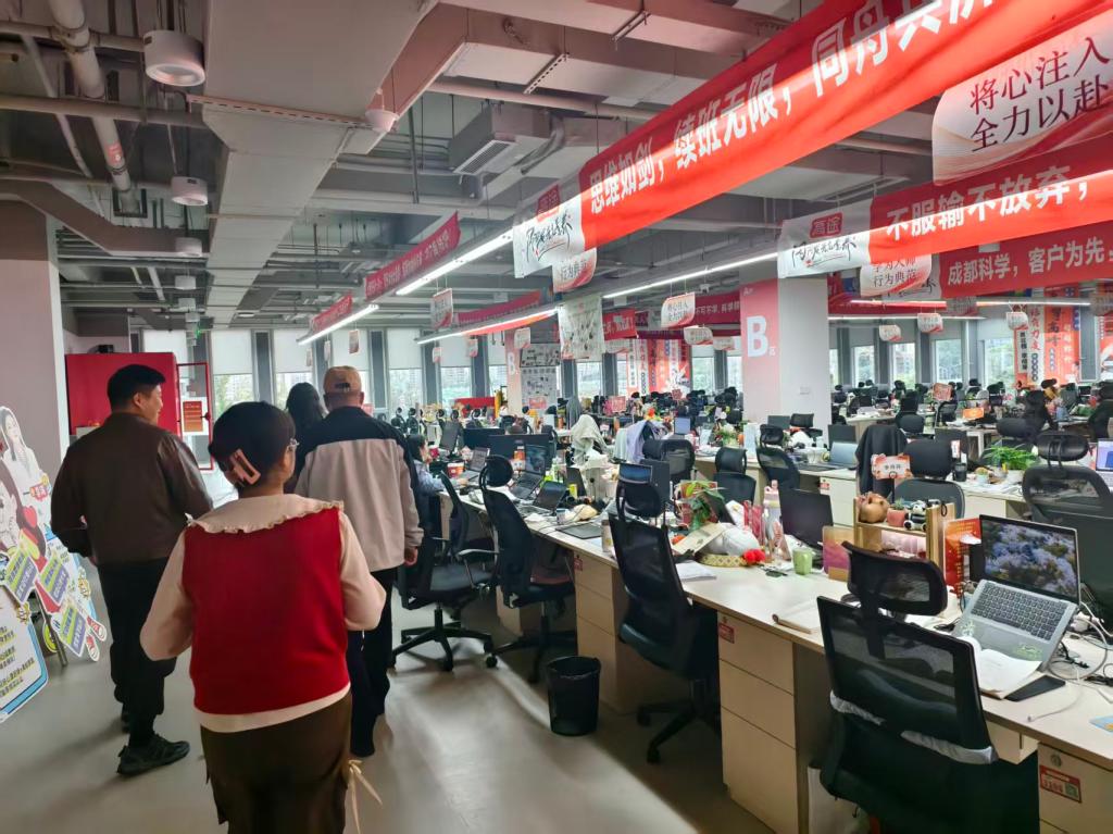 活动伊始,九游官方网站领导一行参观了成都高途云集教育科技有限公司的办公区域与教学环境,高途廉秀志介绍了企业发展情况、各业务线及各高校合作情况。