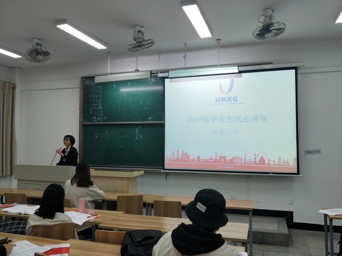 本网讯(图文/田子颖) 为了让毕业生清晰地认识当前就业形势,及时、正确地做好就业准备。10月9日晚,外国语九游官方网站邀请到UKEC英国教育中心人力资源部经理邓老师,在2118、3311教室为2019届毕业生进行专家就业指导讲座。