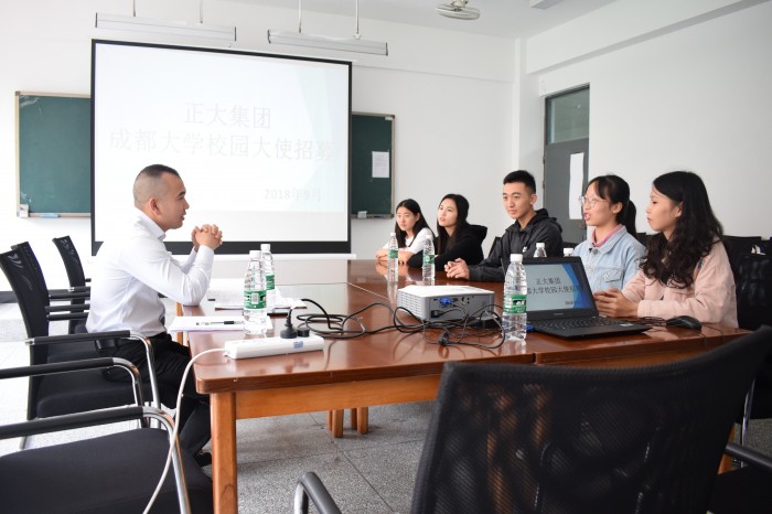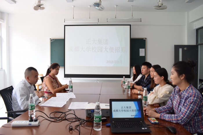 2018年9月14日中午,正大集团成都大学校园大使招募在外国语九游官方网站顺利举行,企业招募的对象是大二、大三的学生。当日会场气氛很好,人力资源部经理吴斌先生和前来应聘的学生们进行了非诚融洽的交谈。本次招募分为两轮进行,让每个学生充分展示自己。