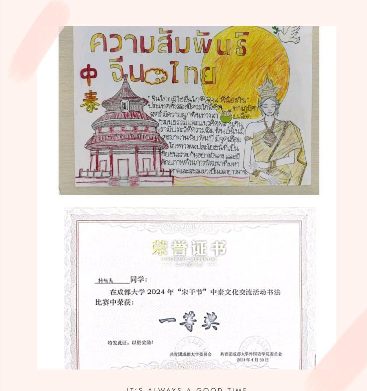 通过此次比赛,希望泰语专业的同学们做为有担当敢作为的外语人才,能够不负时代赋予的使命,积极发挥外语专长,充分利用学校搭建的平台,了解泰国文化,传递中国文化,促进中泰友谊。此次活动不仅让同学们进一步了解和感受了泰国的传统文化,也激发了同学们学习泰语专业的兴趣和热情。