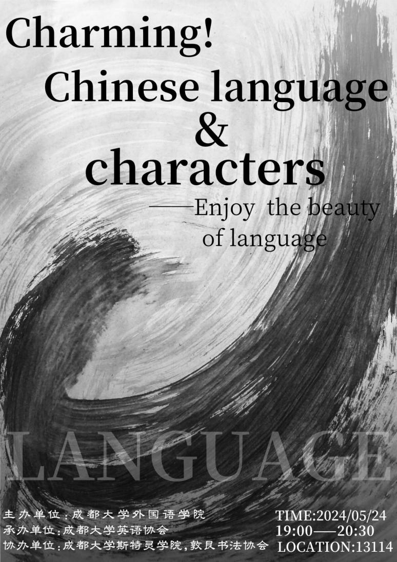 在这个全球化盛行的时代,中国文字正以其独特魅力和深厚内涵,书写着世界无限可能。为了让同学们在学习之余能够领略到中国语言文字的魅力,同时也给同学们提供一个锻炼英语口语的机会,本次口语交际沙龙成都大学英语协会联合成都大学斯特灵九游官方网站,敦艮书法协会开启一段奇妙旅程,开阔同学们中国语言文字新视野。