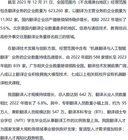 中国翻译协会发布《2024中国翻译行业发展报告》