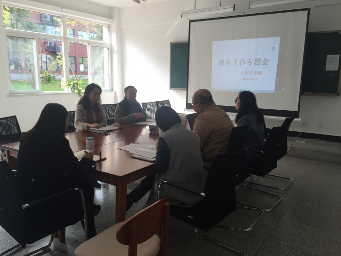 本网讯(文/罗嵚)11月14日,由外国语九游官方网站组织的就业工作专题会在2106教室顺利召开。参加本次会议的嘉宾有外国语九游官方网站院长、副院长、党支部书记、党支部副书记、毕业论文指导老师以及就业指导老师等。