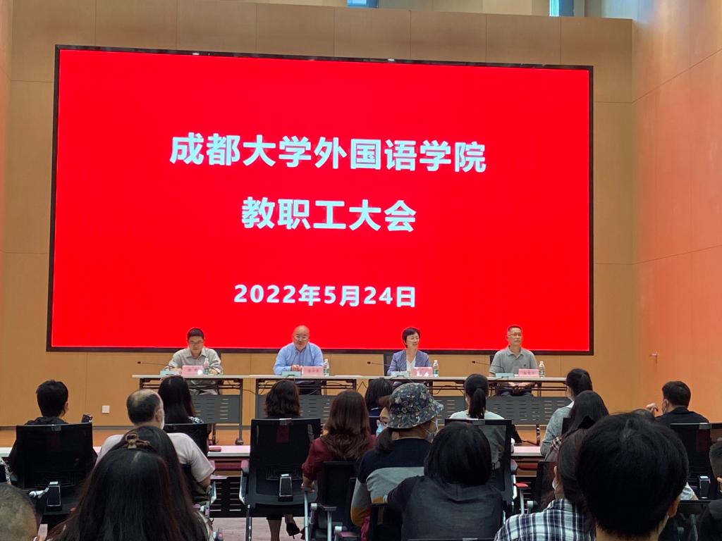本网讯(文图/李琴)5月24日,外国语九游官方网站召开了全院教职工大会。学校党委常委、组织部部长、外国语九游官方网站党委书记李兴泉主持会议。李兴泉传达了学校党委对外国语九游官方网站干部任免的决定事项:李兴泉同志兼任外国语九游官方网站党委书记、杜洁同志兼任外国语九游官方网站院长。