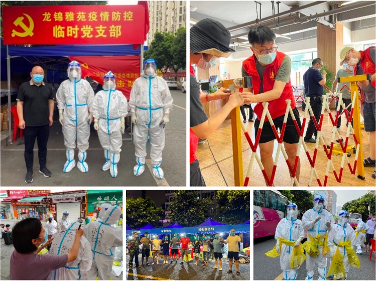 接到学校对口支援成华区的抗疫任务后,副院长白杨、党员教师刘博、周怡乔和王增辉四位同志快速响应。“收到”、“我能来”、“我马上到”、“我参加”,四位党员同志火速赶往学校集合,到达成华区对口支援社区后,立刻投入紧张有序的抗疫工作。面对突如其来的疫情,四位党员同志没有丝毫退缩,穿上密不透风的防护服,上门完成核酸检测扫码。顶着三伏天的高温,他们挥汗如雨,协助社区开展各项组织工作。四位党员同志不惧困难,义不容辞发挥示范带头作用,勇担抗疫重任。汗水无数次湿透衣襟,浸满了他们的防护服,脸颊被口罩压出深痕,甚至呼吸不畅,身体开始出现种种不适,他们仍然坚定信念,克服困难,发扬连续作战的作风精神,坚守在社区抗疫一线,用实际行动践行共产党员的初心和使命。