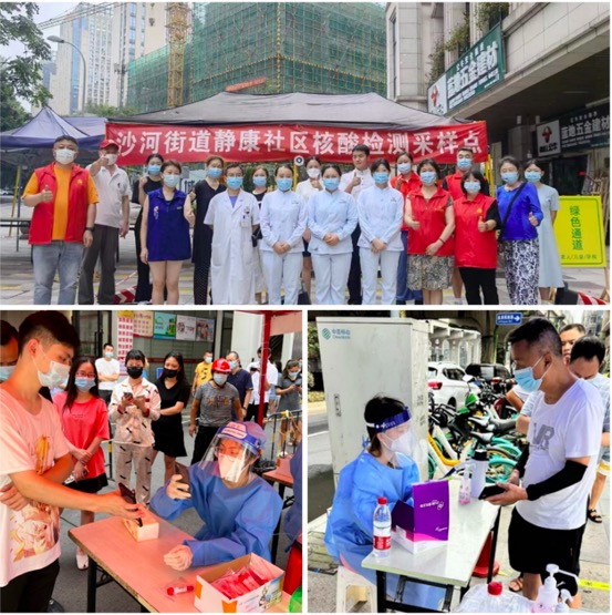 病毒无情人有情,许多教师积极参加所在社区疫情防控工作。龙波宇老师主动请缨参与核酸检测,将两个孩子送到父母家中,晚饭都没有来得及吃就立刻投身到疫情防控一线,共担任4次核酸检测志愿者,协助医务人员进行扫码登记。黄鸣教授参加成大花园和温江区泰基花溪谷小区核酸检测信息录入等工作多次,服务时间10余小时。教师尹山鹰参加成大花园核酸检测信息录工作,服务时间约10小时。还有蒋应辉、刘建海、田寨耕、魏尼亚和王姝绘等老师,也多次参加所在社区疫情防控工作,为打赢这场没有硝烟的抗疫之战作出了自己的贡献。