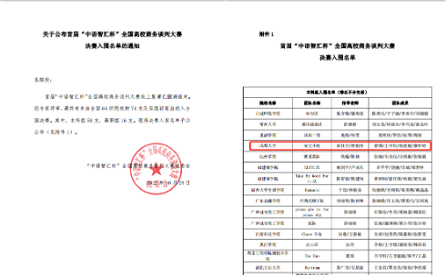 近日,由外国语九游官方网站教师秦仕宇、周怡乔带队指导,商务英语专业2019级学子曾琪、王中钰、杨佳妮、廖伊婷组成的“成交小组”代表成都大学参赛,成功晋级全国决赛。按照比赛章程,他们将于今年12月参加全国决赛。