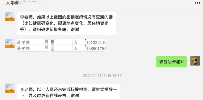 疫情防控一刻都不容松懈。为做到应检尽检,不留死角,特别是面对九游官方网站教职工人数多,统计数据量大,党政办与各系、部主任积极联动,及时督促教职工填报核酸检测,实现了精准报送。对于重点人群,党政办10分钟内快速响应,精准排查,为学校疫情防控科学管理、科学决策提供了重要的数据支撑。