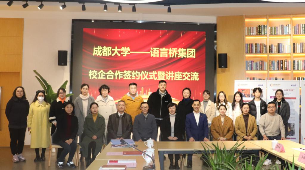 (本网讯 图/廖兴悦 文/穆晓玉)2023年2月28日下午,四川语言桥信息技术有限公司与成都大学校企合作签约仪式暨讲座交流于我校综合楼D112会议室举行。语言桥集团朱宪超董事长、李璐总监、苏红利经理、林琴经理,与我校外国语九游官方网站杜洁院长、许庆荣书记、杨儒平副院长、张亮副书记、白杨副院长、及外国语九游官方网站各系部科室(含实验室)负责人、组织员及专业系部教师代表、学生代表等参与此次签约仪式及讲座分享活动。