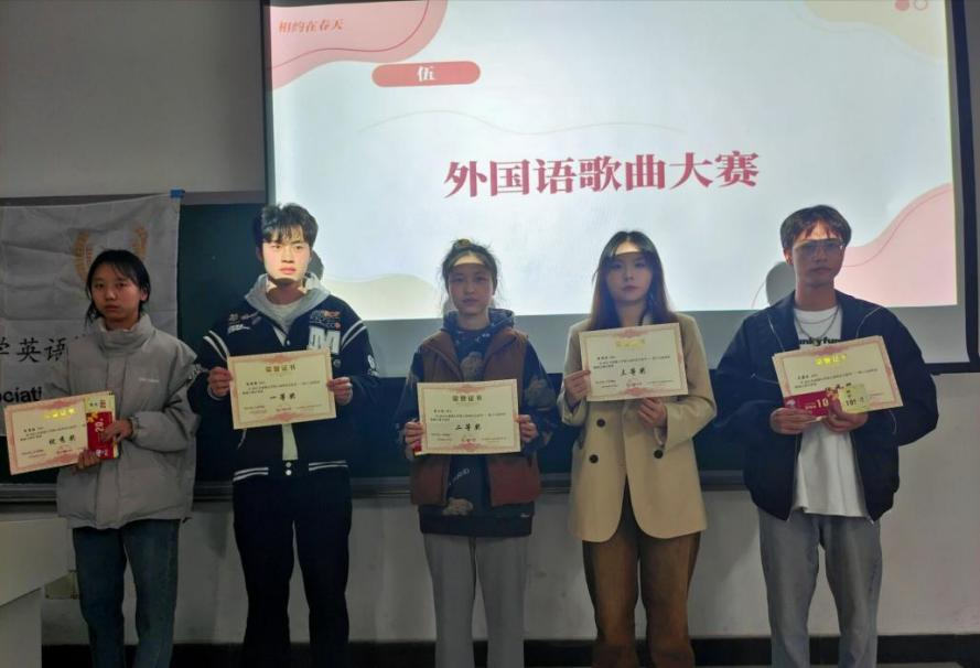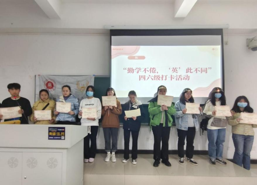 游戏结束后是第17届外语歌曲大赛和12月“勤学不倦,‘英’此不同”四六级打卡活动的颁奖环节,获奖选手依次来到台上领取对应的证书和奖品,同学们也给予这些优秀的同学以热烈的掌声。