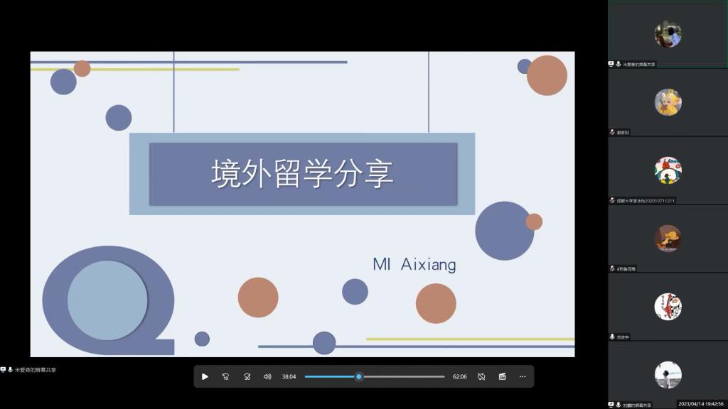 本网讯(文 / 谢家阳 图 / 朱映宣)4月14晚上19点,九游官方网站留学交流分享会以视频会议形式在线上顺利召开。本次会议邀请到了五位来自九游官方网站的优秀毕业生。他们在这次会议中,向外院同学们分享了自己的留学心得体会,同时也为大家提供了宝贵的经验。