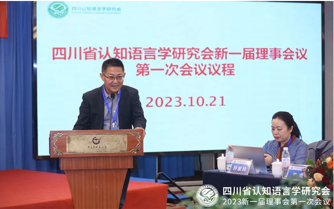 金秋十月结硕果,丹桂飘香话丰收。10月21日下午,由四川省认知语言学研究会主办,七洲教育承办的四川省认知语言学研究会2023新一届理事会议在郫都区丽天花园大酒店成功举办。来自省内多所知名高校的近30位专家教授、学术精英受邀参会与分享交流,共话研究会新发展。