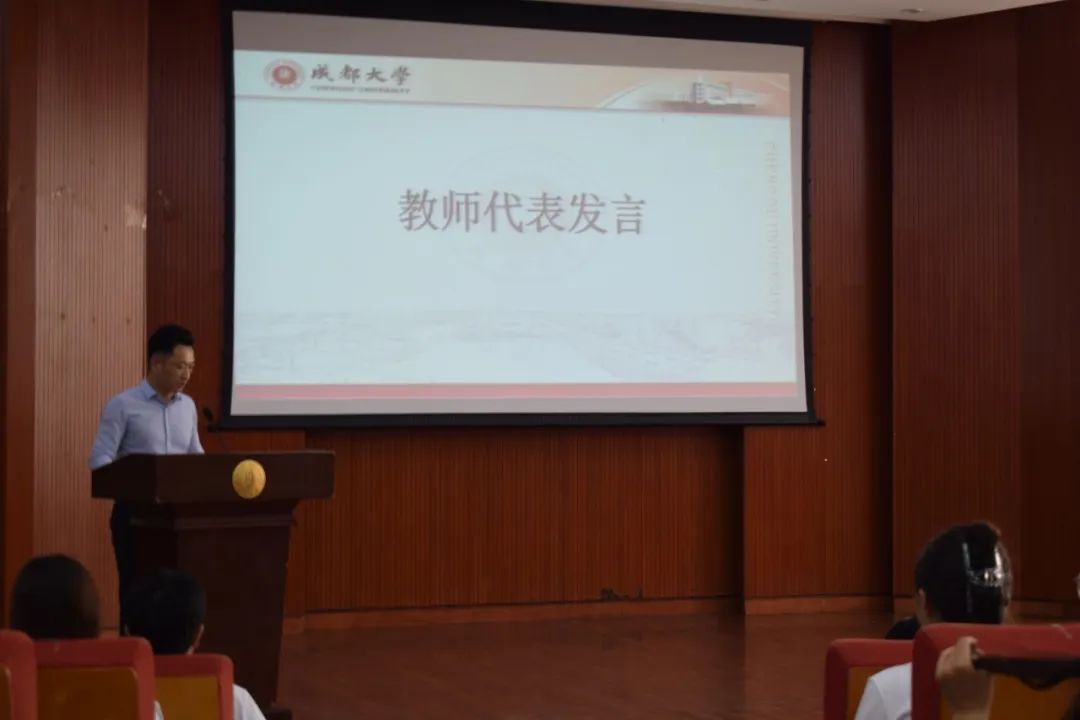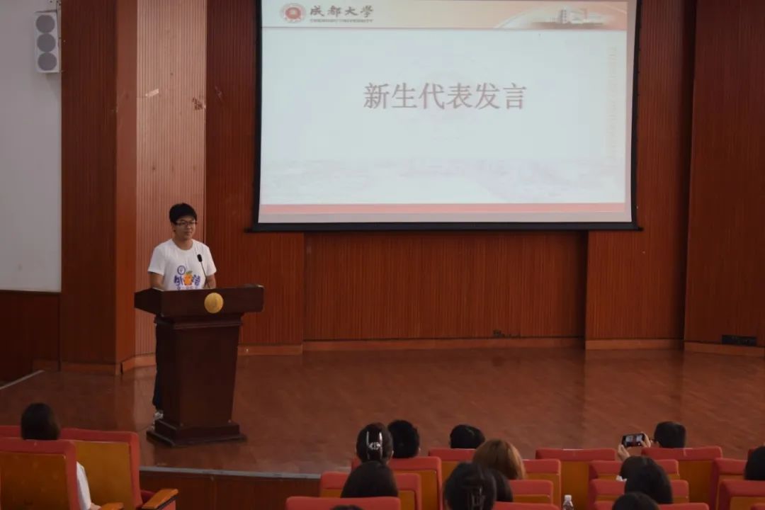 本科新生代表王昕颉发言。三年倏忽,一路峥嵘,终于在成都大学的校园里齐聚一堂,“大直若屈,大巧若拙,大辩若讷”,他认为语言学习的最高境界,不在于技巧的炫耀,而在于用心去感受,用爱去沟通,作为外国语九游官方网站的学生,有责任、有能力,成为中华文化的传播者、世界和平的倡导者,成都大学提供了一个锻炼自己、成就自己的平台。他表示在接下来的大学生活中,应通过行动,更好地磨练自己,改变自己,提升自己,迎着浪潮而上,乘风击万里长空,为青春写下无悔的篇章。