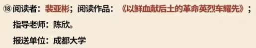 2021级英语4班 裴亚彬 在陈欣老师指导下,凭借中文阅读作品《以鲜血献后土的革命英烈车耀先》获三等奖