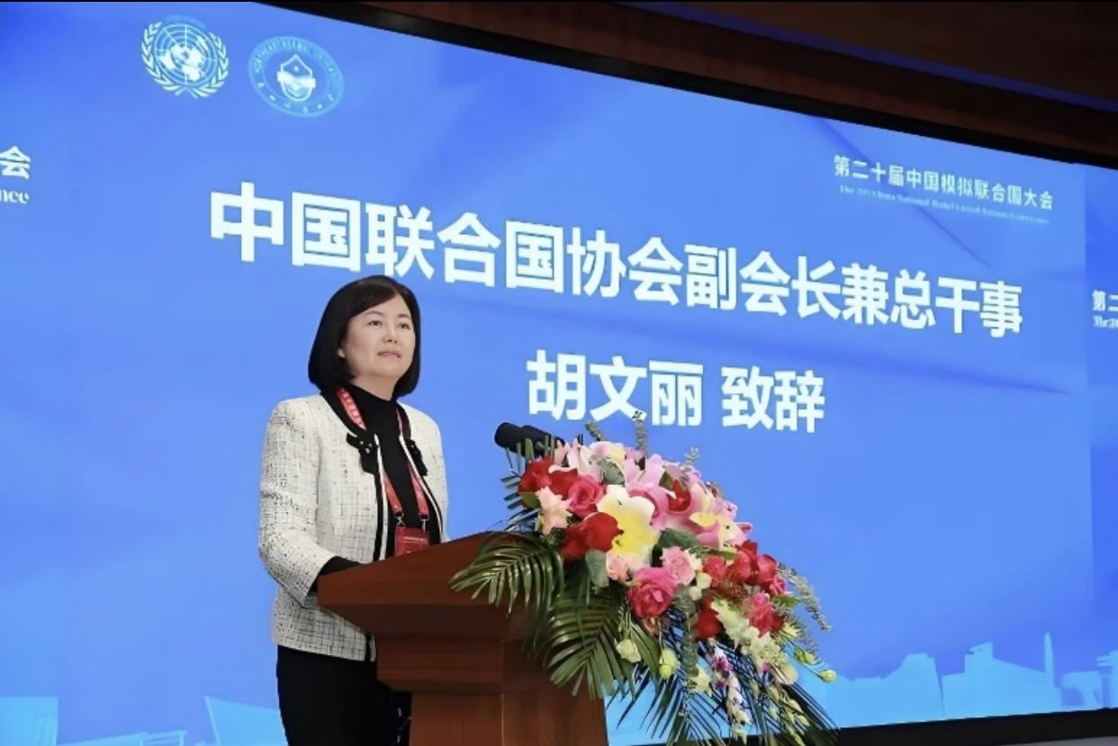 (中国联合国协会副会长兼总干事胡文丽致辞)