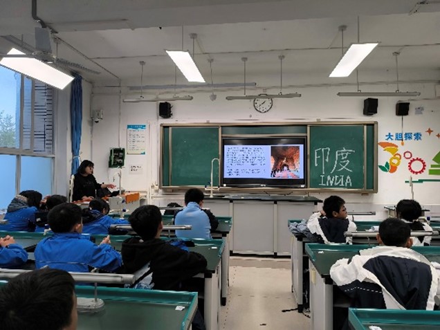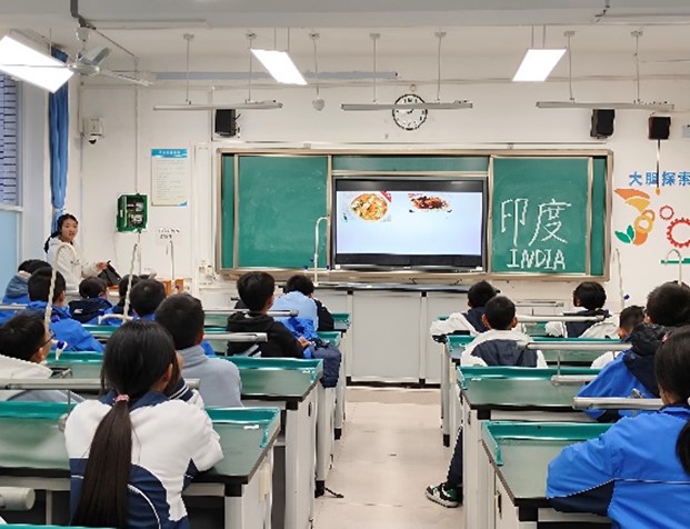 与此同时,2022级英语专业1班的叶慧和邸亚楠,也在李玲老师的指导下,为十陵中学的学生们带来了关于印度的国际理解课程。她们从印度的宗教信仰、丰富多彩的民俗节日和独具特色的民族服饰等方面入手,让学生们对印度有了更深入的了解。课堂上,学生们热情高涨,纷纷举手提问,与老师们展开了频繁的互动。主讲老师们凭借别具一格的教学风格,成功点燃了学生们的学习热情,为这次教学活动的成功增添了点睛之笔。