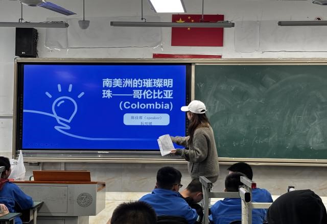 此外,22级英语3班的陈佳蓉和阮明媛同学,则带领学生们走进了南美洲的明珠——哥伦比亚。她们精心策划了教学设计,利用多媒体技术,将哥伦比亚的壮丽山川、绚烂的民俗风情呈现在学生们的眼前。在互动环节中,学生们通过知识抢答,不仅了解了哥伦比亚的地理风貌、文化特色,还学会了相关英语名词的表达,锻炼了语言表达能力,激发了探索未知世界的好奇心和欲望。