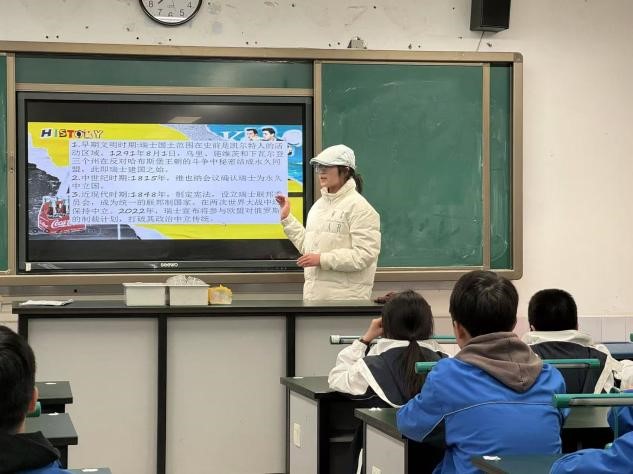 与此同时,周馨月与康佳鑫同学将瑞士的风采带进了十陵中学的课堂,为初二的学生们揭开了瑞士文化的神秘面纱。这次课程涵盖了瑞士的国家概况、历史沿革、政治体系、文化特色、美食以及著名的旅游景点,目的是拓宽学生们的国际视野,加深对瑞士文化的了解。