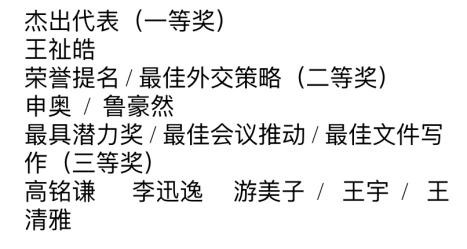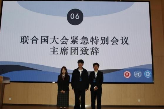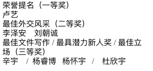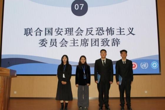 英文委员会主席团Dais Head金美芝致辞中表示,作为主席,见证了各位代表在会场从最初破冰期按规则交流、提交文件、积极提问,到推会过程中对规则和会场把控渐入佳境的努力与蜕变,虽两份决议草案未通过,但这是模联场常态,且代表们展现出外交官应有的国家立场,最后表达了对指导此次联合国安理会反恐怖主义委员会相关活动的感谢及期待未来再相聚的愿望。