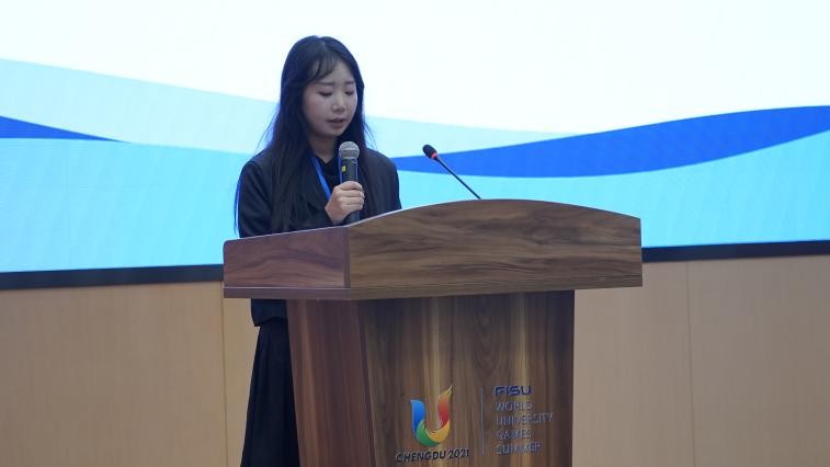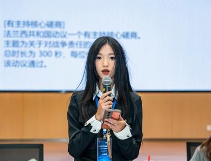 随后,秘书长金美芝向远道而来的各位代表以及为本次活动付出辛勤努力的全体工作人员,致以最热烈的欢迎和最诚挚的感谢。并希望通过这一平台,让每一位参与者深刻感受作为未来世界公民所肩负的责任与担当,并预祝第三届成都大学模拟联合国活动圆满举办。
