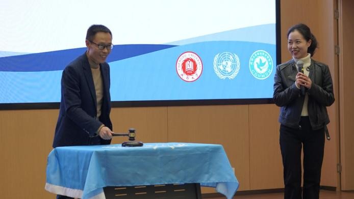 最后,由九游官方网站党委书记许庆荣和外国语九游官方网站院长白杨上台共同敲锤,宣布2024成都大学第三届模拟联合国活动正式开幕。