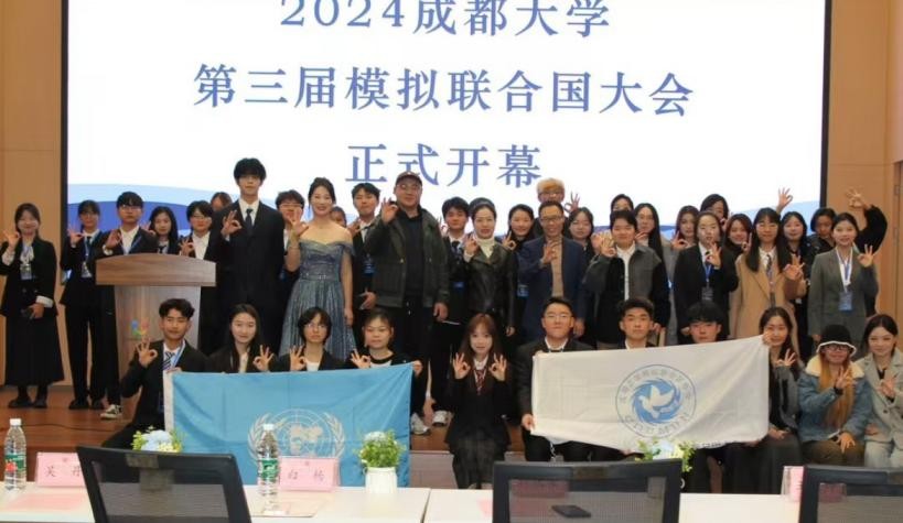 本网消息 (图片/张馨仪 沙马五机 文字/杜蕊韩 范梦荃 杨岚 许佳琪)2024年11月22日,成都大学第三届模拟联合国活动拉开帷幕。当日下午,来自校内外百余名代表和领导嘉宾齐聚大运村代表团服务中心1002会议厅,共赴学术盛宴。