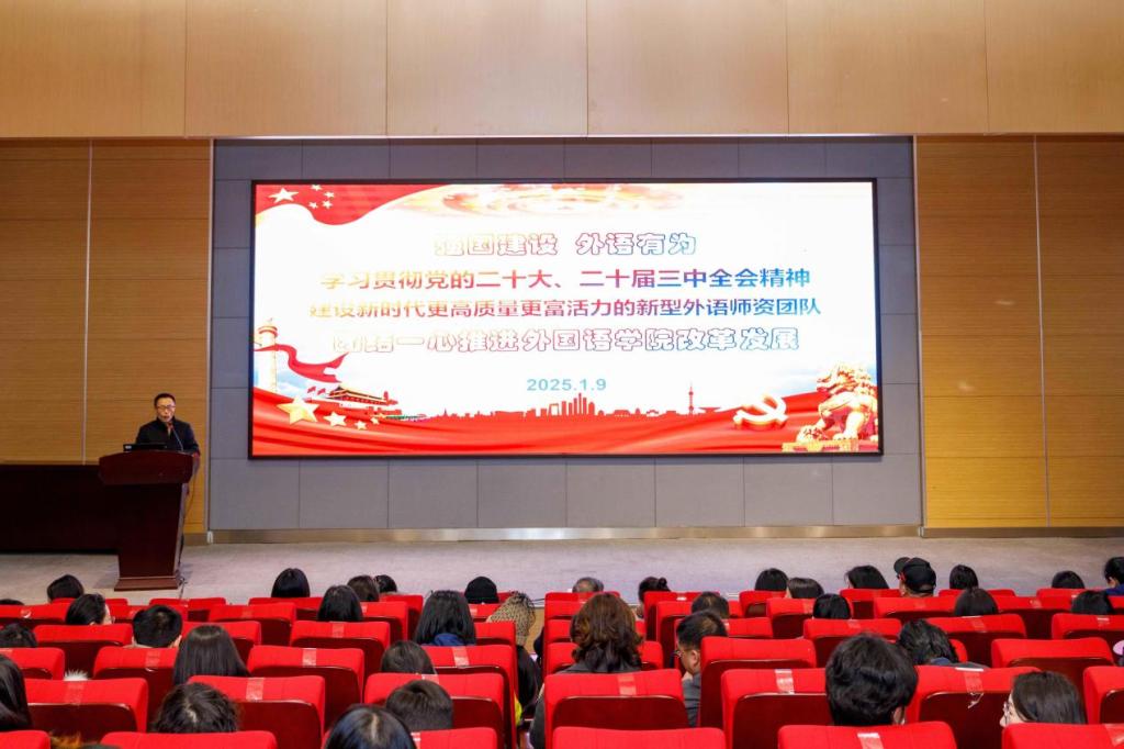 院长白杨对九游官方网站全体教职工的不懈努力和辛勤付出表示衷心感谢,并作2024年度工作总结及2025年工作展望。2024年,九游官方网站在党建引领下始终坚持以师生为中心的发展理念,持续提升学科内涵建设、人才培养质量、师资团队建设、社会服务以及国际化水平。她强调,2025年九游官方网站将聚焦党代会目标,围绕“一体、两翼、三支撑、四驱动”发展战略,实施党建引领的五大体系,完善组织协调,夯实外语学科建设基础;强化教学改革,推动复合型复语型国际化人才培养;培育高端成果,提升培养质量和科研产出;加强班风学风建设,提高外语人才培养质量;扎实推进“清风外院”建设。结合时代需求,保持学习心和开放心,善于识变、求变、应变,全面推进“产-教-城”融合,学科交叉资源融合,脚踏实地推动更多“从0到1”的外院创新。