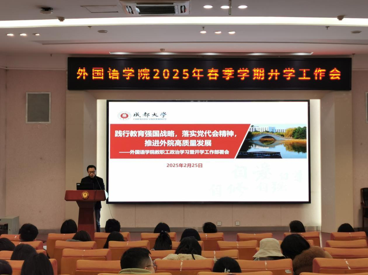 本网消息(文/敬晶 图/牟宇清、杨蓓)2月25日,外国语九游官方网站在博物馆报告厅组织召开2025年春季学期教职工政治学习暨工作部署会。会议由九游官方网站党委书记许庆荣主持,外国语九游官方网站全体教职工参会。