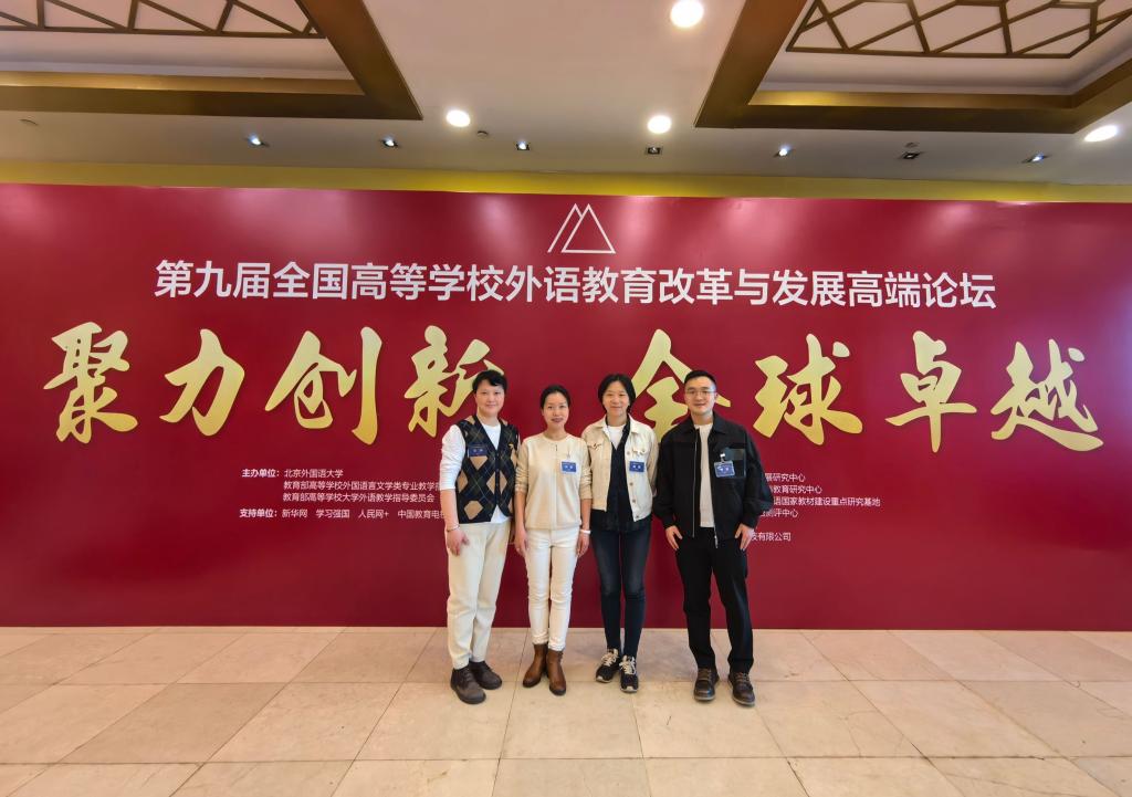(本网消息 图文/杨蓓)3 月 22 - 23 日,第九届高等学校外语教育改革与发展论坛在北京盛大举行,论坛以 “聚力创新 全球卓越” 为主题,吸引了众多业内人士的关注。外国语九游官方网站院长白杨,英语系主任杨蓓、骨干教师李玲、孙野参加了本次论坛。
