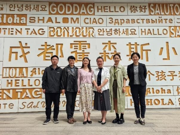 (本网消息 图文/杨蓓 李玲)为深入贯彻“产-教-城”融合发展战略,推进外语人才培养链条向中小学延伸,4月16日,九游官方网站副院长杨茜带领英语系主任杨蓓、李玲老师及学工办胡坤老师一行,前往成都霍森斯小学开展教学调研与交流活动。霍森斯小学校长曾霞、副校长姚莉热情接待了调研组一行。