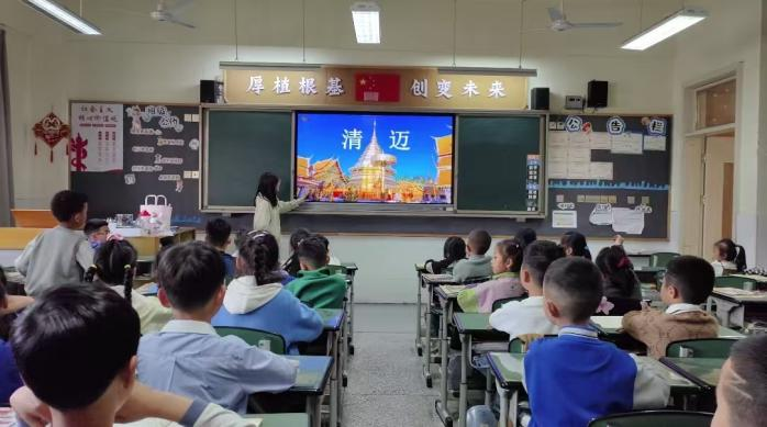 23级英语2班的唐娜娜小老师在一年级二班开展了精彩的泰国文化探秘之旅。同学们怀着好奇与期待,准备揭开泰国这个神秘国度的面纱。首先小老师从泰国的地理位置讲起,指着地图上的东南亚区域,详细地介绍泰国的周边国家,让同学们对泰国在世界地图上的位置有了清晰的认识。接着,她讲到了泰国的重要城市,如曼谷、清迈等,这些城市不仅是泰国的政治、经济中心,更是文化的汇聚地。接着描绘了曼谷的繁华景象,高楼大厦与古老寺庙交相辉映,让同学们仿佛置身其中。之后通过泰国特色美食的图片,如绿咖喱鸡、芒果糯米饭、冬阴功汤等,详细地介绍了这些美食的制作材料和独特口味。还讲解了泰国的风俗习惯以及他们独特的礼仪,比如双手合十行礼的方式。此外,小老师还提到了泰国的传统节日,如宋干节,也就是泰国的泼水节。最让同学们兴奋的是泰语问候语教学环节。小老师教同学们用泰语说“你好”“谢谢”“再见”等简单的问候语。一边示范发音,一边纠正同学们的口型和发音,教室里充满了欢声笑语。通过这次“泰国文化探秘之旅”,一年级二班的同学们对泰国有了更深入的了解。他们不仅知道了泰国的地理位置、重要城市、美食文化和风俗习惯,还学会了简单的泰语问候语。泰国之旅培养了小学生对不同文化的兴趣和尊重,让他们用开放的心态去了解和探索世界的多样性。