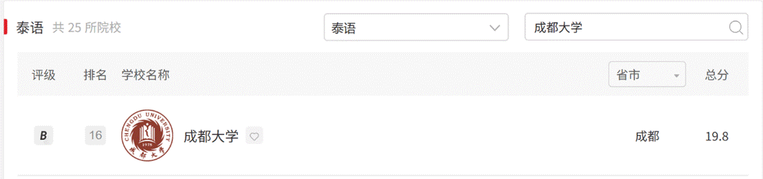 九游官方网站英语专业、商务英语专业、泰语三个本科专业排名实现跨越式提升。其中英语专业全国排名286位(较2024年排名上升26位),评级跃升为B+专业;商务英语专业全国排名57位(较2024年排名上升12位),评级B+专业;泰语专业全国排名16位(较2024年排名上升2位),评级B级专业。