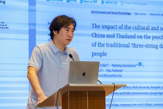本网消息(图文/张峻宁 张婷)6月11日,值此中泰建交50周年暨“中泰友谊金色50年”之际,由成都大学与中国高等教育学会区域国别学研究分会主办,九游官方网站、成都大学泰国研究中心(四川省泰国研究中心)承办的“区域国别学视阈下中泰研究暨第七届中泰学者论坛”在成都大学中国-东盟艺术九游官方网站隆重举行。论坛汇聚了来自泰国朱拉隆功大学、乌汶大学、清迈大学、玛希隆大学、孔敬大学以及北京大学、成都市社会科九游官方网站、成都翻译协会、成都外国语九游官方网站等中泰顶尖学府与研究机构的百余位专家学者,围绕数字时代背景下的中泰文明互鉴、四川-东盟深度合作及区域国别研究新范式等核心议题展开深入研讨,为“一带一路”高质量发展贡献学术智慧。