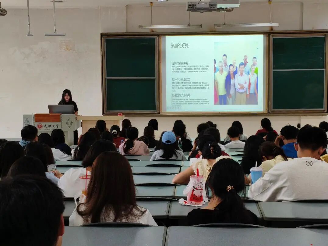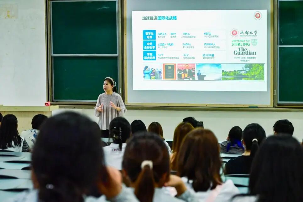 9月16日,成都大学国际合作与交流处毛凤雨老师对外国语九游官方网站2025级新生进行了国际化教育,毛老师详细介绍了学校历史、校园设施,并重点解读了多项与海外高校合作的求学项目。此次活动不仅帮助新生深入了解学校的国际化资源,更为他们拓宽学业视野、增强跨文化沟通能力提供了重要平台。参与海外项目将有效提升学生的语言应用能力与全球竞争力,为其未来职业和学术发展奠定坚实基础。