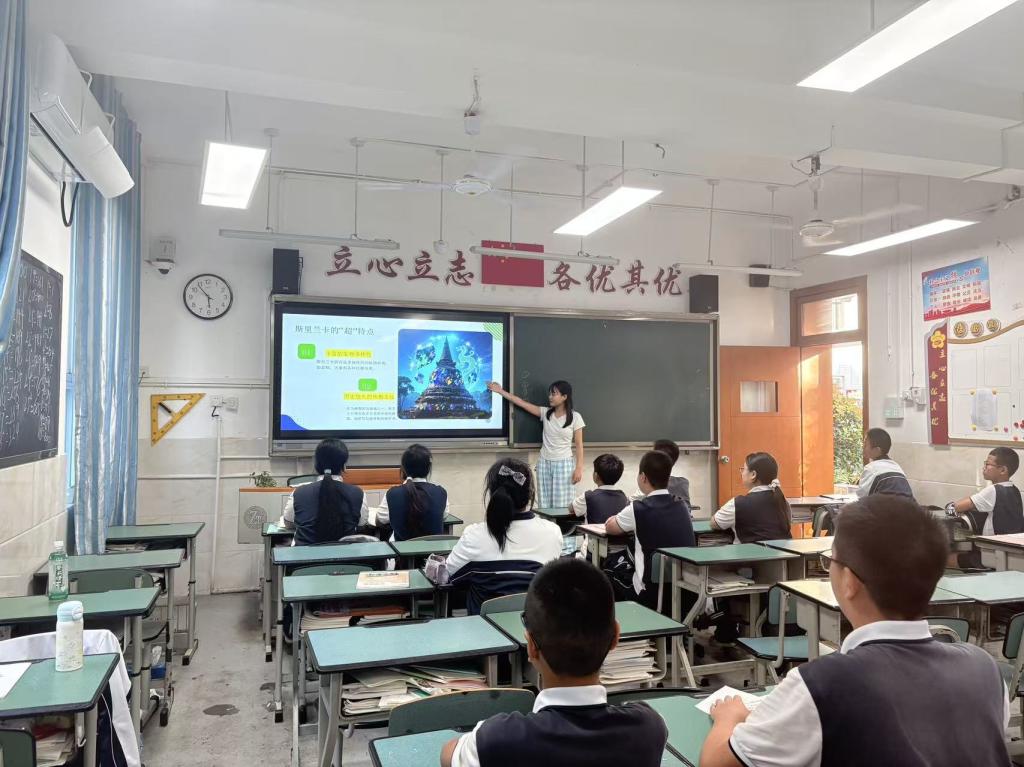 23级降初拉姆同学为初二一班带来了斯里兰卡文化专题课。她以"印度洋上的明珠"为标题,通过大象文化、红茶故事和彩色寺庙三大板块,展现这个岛国的独特魅力。课堂上,同学们睁着好奇的眼睛认真倾听,有人举手问"斯里兰卡的红茶怎么泡",还有人追问"大象真的能帮人干活吗",热烈的互动让课堂气氛格外活跃。当讲到丹布拉石窟寺的彩色壁画时,学生们纷纷感叹"就像走进了童话世界"。