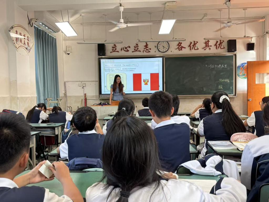 "秘鲁西临太平洋、东靠亚马逊雨林"——随着这句地理描述,23级杨洪同学带领初二六班的同学们开启了一场跨越半球的奇妙探险。当讲到马丘比丘的巨石奇迹时,教室里满是惊叹;提及纳斯卡线条的谜团时,大家更是凑在一起热烈讨论——有人猜是外星人遗迹,有人觉得是古人的天文标记。一位同学举着地图追问雨林秘境的样子,让课堂变成了一场生动的地理探索之旅。