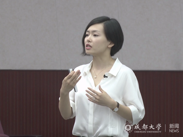 从成都大学地铁站乘坐地铁4号线到市二医院,再换乘3号线到春熙路,IFS广场负一楼的言几又书店是2017级商务英语专业王一凡的目的地。一场以美国国家公园自然保护为主题的讲座即将开始,到场的还有二十多名来自成都大学的学生,但是吸引他们前来的并不仅仅是本场讲座,还有现场翻译,他们的老师——李若珺。