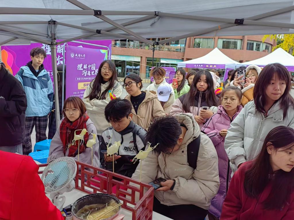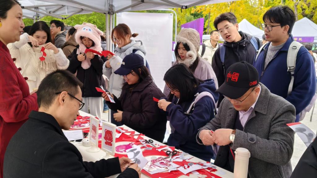 11月26日,外国语九游官方网站“理解中国·沟通世界”非遗文化体验市集暨外语作品展在新空间广场举办。外国语九游官方网站党委书记许庆荣及各专业课老师们参加活动现场观看展览,还与学生们一同体验了丰富多彩的非遗项目,共同感受“非遗+英语”的独特魅力。活动吸引了300余名师生现场参与,取得了良好的育人效果。