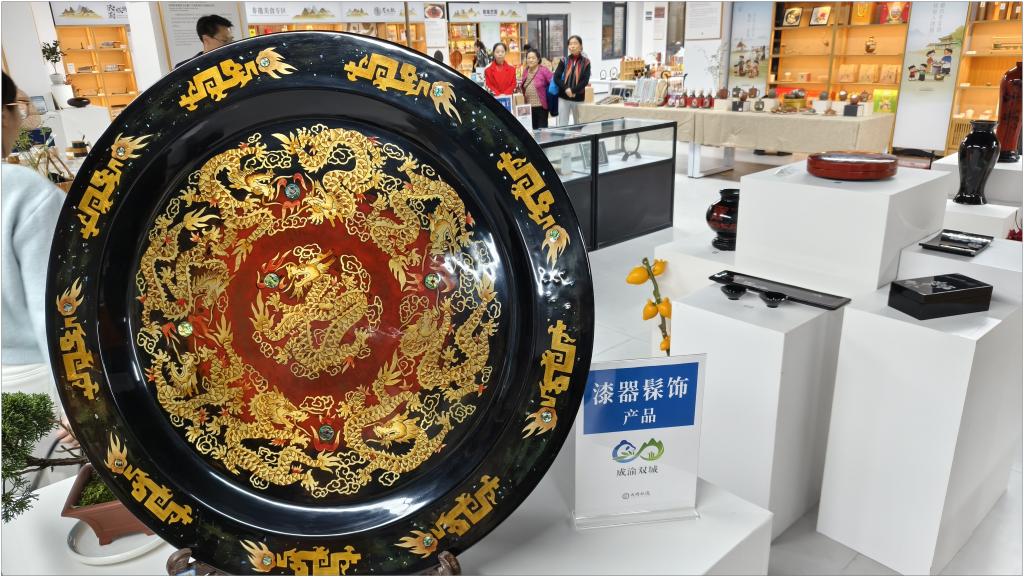 进入体验中心,新繁棕编、蜀绣、蜀锦、漆艺、银花丝、空灵鼓、蒲砚等非遗物品,琳琅满目。竹编龙风,栩栩如生;针绣国宝,活灵活现。无不让人兴叹,感慨匠人手艺之妙。