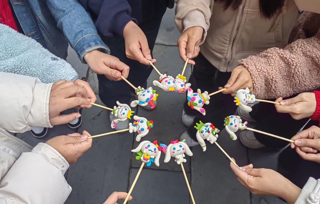 来到本次体验非遗——捏面人,它源于汉代,历史悠久,从用于祭祀到演变为食品,再到演变为工艺品,这项我们儿时记忆的“街头手艺”,在现代成为非遗后不断创新发展。为了大力弘扬捏面人,锦门景区特聘廖老师为同学讲解。廖老师一家世代为面塑艺人,一直以传承和保护捏面人这项非遗为傲。她以捏时尚潮流月挂狗为例,让同学们逐步学习,在实践中领略到了非遗手艺之美。