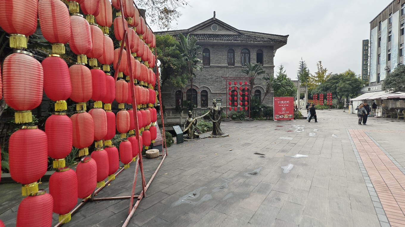 这次的非遗研学前往了中西部地区唯一以丝绸历史文化为主题的国家4A级景区锦门,这是一座仿老成都传统经典建筑而建的丝绸文化小镇。小镇景色优美,漫步在其中,同学们感受到了民国风派与当今潮流的融合。