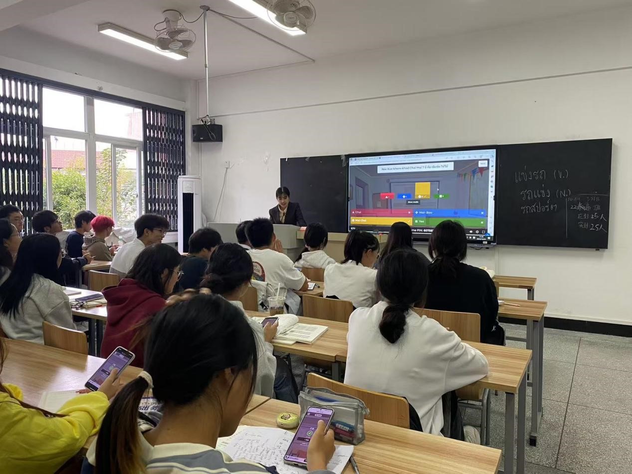 在第二场讲座中,泰国昭帕亚大学的另一位专家Pimchanok老师则采用了一种别开生面的教学方式——在线泰语游戏。通过这一创新方式,Pimchanok老师不仅激发了学生们学习泰语的热情,还就泰国就业环境、发展动态以及国际合作等方面的问题与学生们进行了深入的交流。学生们在游戏中学习,在互动中成长,收获颇丰。