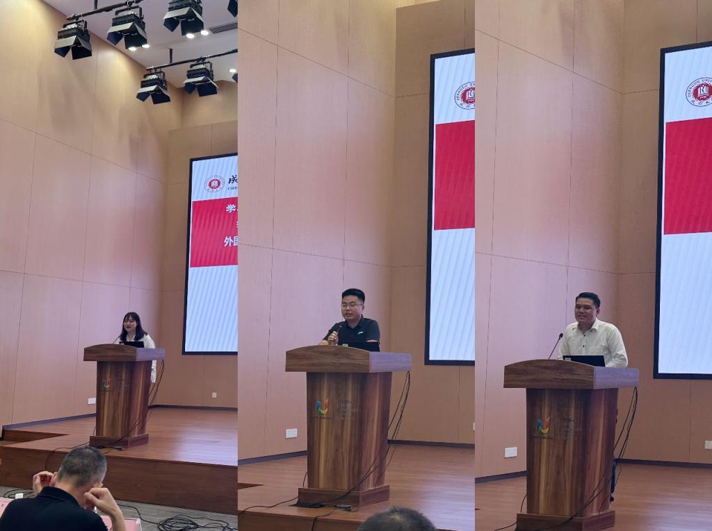 张亮首先向全体教职工介绍了新学期进入外国语九游官方网站工作的安卓玛、胡坤、王五(泰籍外教)三位老师并代表九游官方网站欢迎三位老师加入外国语九游官方网站大家庭。三位老师做自我介绍并表示将以饱满热情融入九游官方网站学校大家庭,在人生新阶段谱写新篇章。