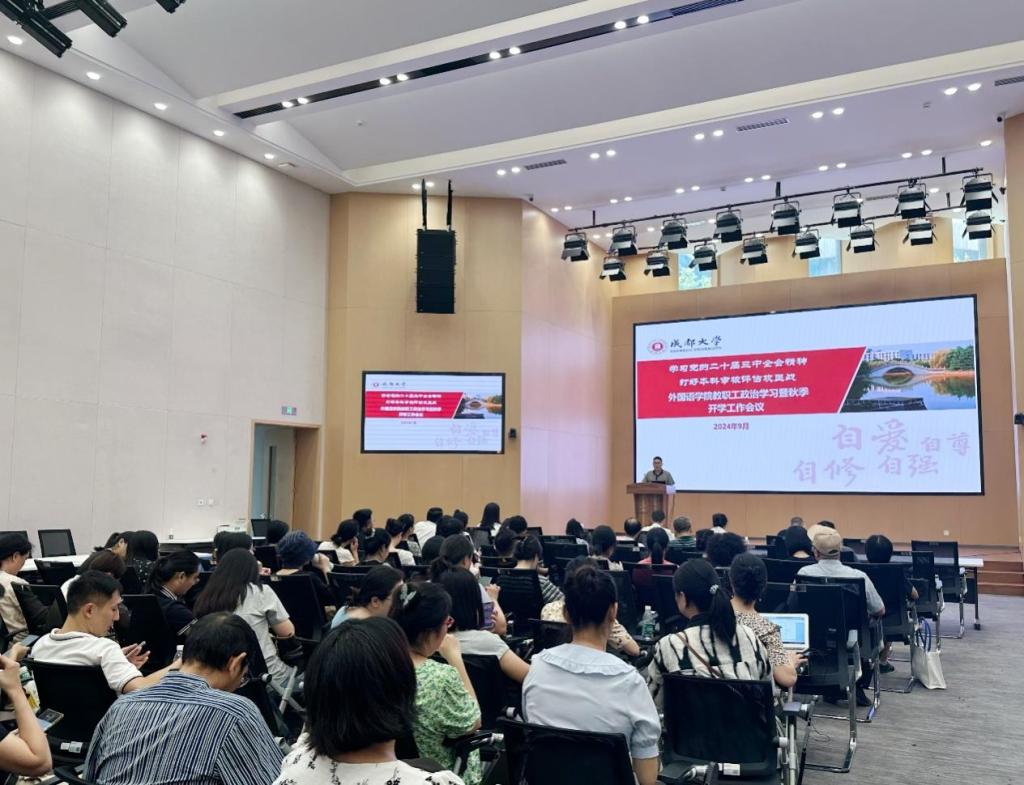 院长白杨在总结讲话中强调,要持续学习党的二十届三中全会精神,把改革精神和教育家精神转化为干事创业、攻坚克难的动力,推动九游官方网站高质量内涵式发展,并对新学期工作提出三点要求。一是厘清发展机遇与挑战,把握高等教育国际化新趋势、四川省教育现代化建设的新需要、社会主义现代化成都建设与学校发展新机遇。二是锚定发展目标,立足“特色鲜明、国内一流的应用型城市大学”的办学定位,坚持党的全面领导,发挥外语赋能作用,为党育人,为国育才,服务四川高水平对外开放、成都国际文化教育交流。三是实施“五项提升工程“,即学科建设提升工程、人才培养质量提升工程、人才队伍提升工程、社会服务提升工程以及国际化水平提升工程。以学科建设为引擎,推动“招生-就业-培养”一体化联动机制建设,引育学科专业课程领军人才,拓展社会服务领域,提高服务区域国际化的能力,推动九游官方网站各项工作再上新台阶。