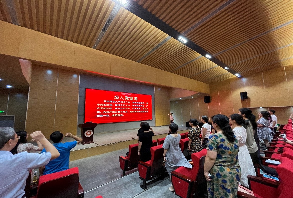 许庆荣书记领誓,带领全体党员重温入党誓词。获成都市委教育工委优秀表彰的党员代表学生支部裴天凤老师交流发言。教师第二、第三党支部书记罗志红、田寨耕分别讲党纪。主持工作副院长白杨和教师第一党支部书记刘博为党龄10年、20年、30年的党员教师颁发政治生日贺卡和党建书籍。最后,会议在庄严的国际歌中结束。