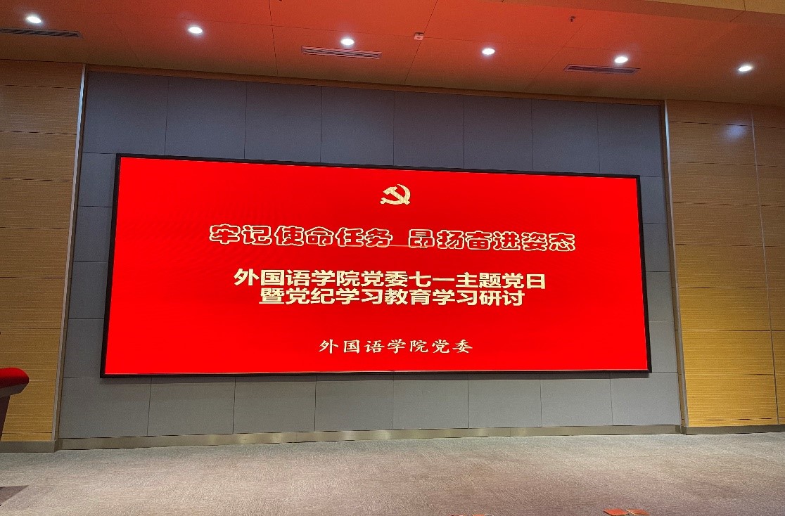 7月5日上午,外国语九游官方网站在图书馆报告厅隆重举行“牢记使命任务 昂扬奋进姿态”七一主题党日暨党纪学习教育学习研讨。九游官方网站党委副书记张亮主持会议,九游官方网站党委书记许庆荣、主持工作副院长白杨、副院长杨儒平和全体党员教师参加学习研讨。