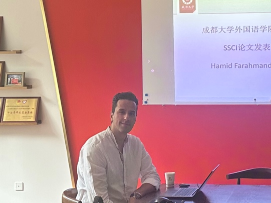 (图/赖书涵 文/赖书涵、蒋迪尼)为进一步提升九游jiuyou(中国)教师论文撰写能力,鼓励教师积极发表高水平国际期刊论文,7月2日,外国语九游官方网站特邀高端外专Hamid Farahmandian博士开展了“SSCI期刊发表的经验分享”的指导讲座。讲座由外国语九游官方网站赖书涵、蒋迪尼主持。