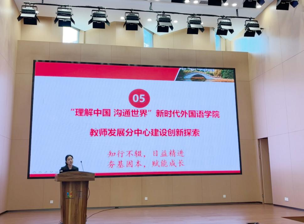随后,外语学科教师团队代表张攀、杨蓓、刘春玉、蒋迪尼、邹小奕,围绕“‘理解中国 沟通世界’新时代外国语九游官方网站教师发展分中心建设创新探索”,为在场师生带来了精彩的学术分享,为教师发展分中心的建设揭开了序幕。分中心将致力于外语学科领域的多个重要方向,包括翻译研究、国别与区域研究、外语教育教学、跨文化交叉学科研究等。通过激励团队成员的研究意识,培育教学学术能力,构建外院特色的教师教育一体化发展共同体。